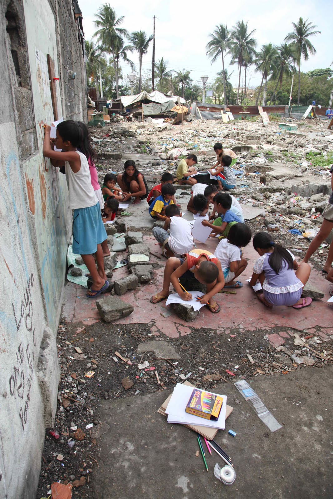 A tire, a rock, broken tables and walls, these kids used anything and everything to get their ideas down on paper.